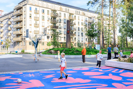 Västergårdsparken byggdes klart för snart ett år sedan och invigdes 14 december med bl.a. tal av kommunstyrelsens ordförande Sara Kukka-Salam. Då var en hel del ytor avspärrade med stängsel så att gräset kunde gro och växa till sig på ett bra sätt. Nu är alla provisoriska staket borttagna och gräset lyser grönt.
